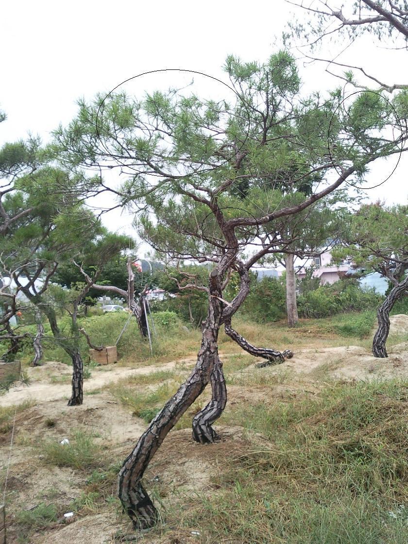 1) 송백류는 기름진 땅에서 제일 아랫가지를 길게 희생지로 150cm까지 키우면 금방 줄기가 굵어 지게 된다. 나중에 희생지를 잘라 삭정이로 만들면 된다. 잡목분재는 이렇게 하면 상처가 3cm 이상이 되어 안 된다.