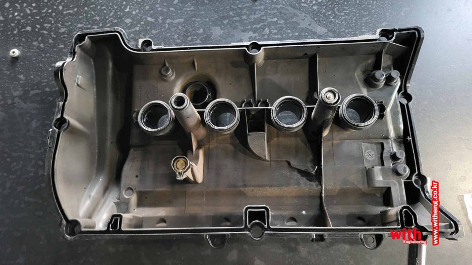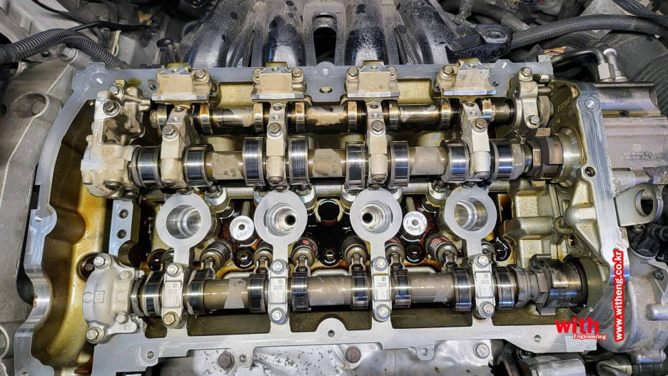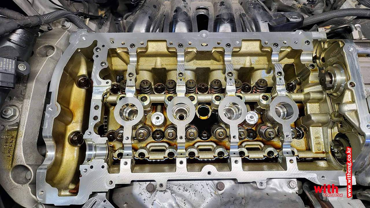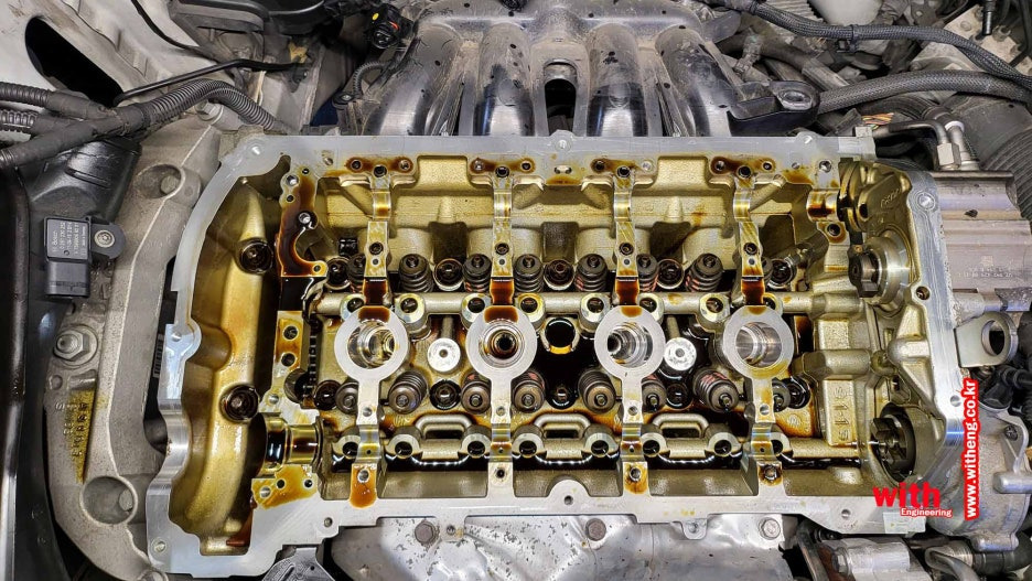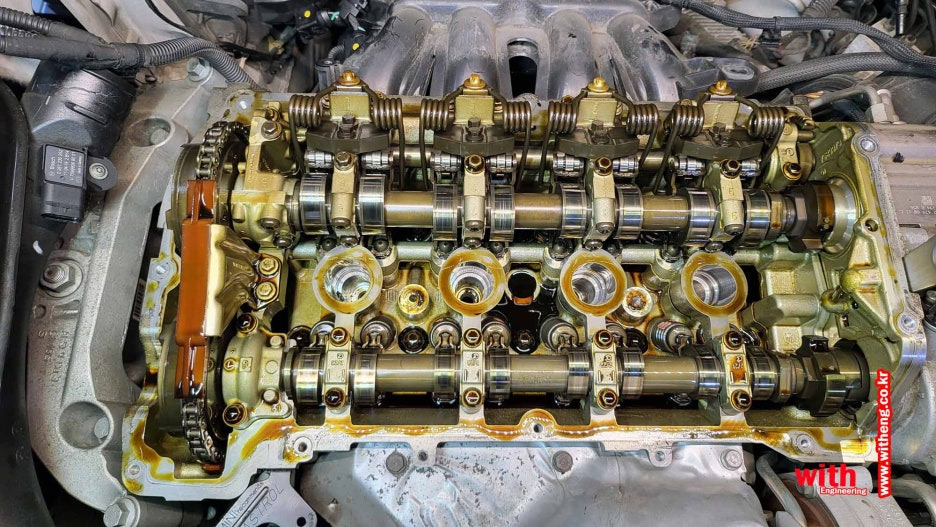 R60 미니 컨트리맨 쿠퍼 S N18 차량입니다.엔진오일 소모와 흰 연기 발생으로 밸브 스테이 씰(가이드 고무) 교환으로 입고하여 밸브 스템씰 (가이드 고무) (가이드 고무) 교환 체인덴셔너교환 헤드커버 개스킷 교환 진행합니다.