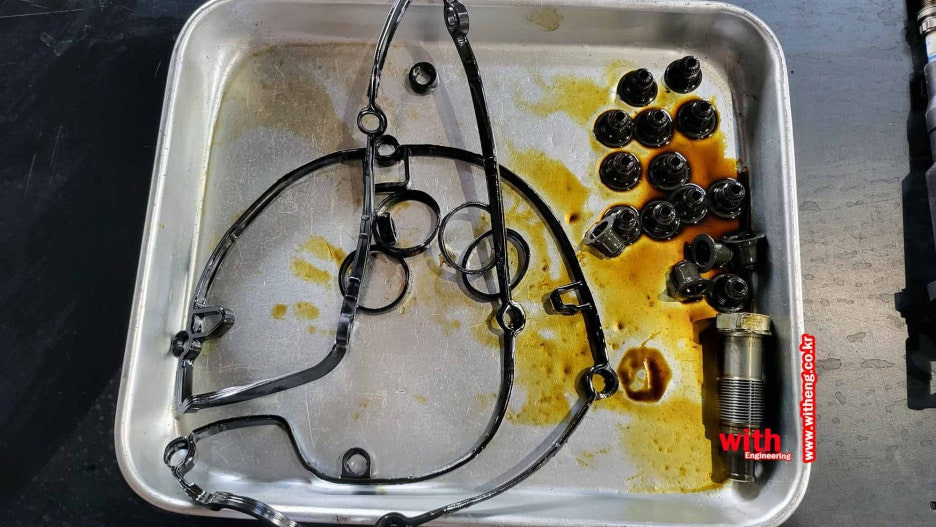 R60 미니 컨트리맨 쿠퍼 S N18 엔진오일 소모와 흰 연기 발생으로 밸브 스템씰 (가이드 고무) 교환 체인덴셔너교환 헤드커버 개스킷