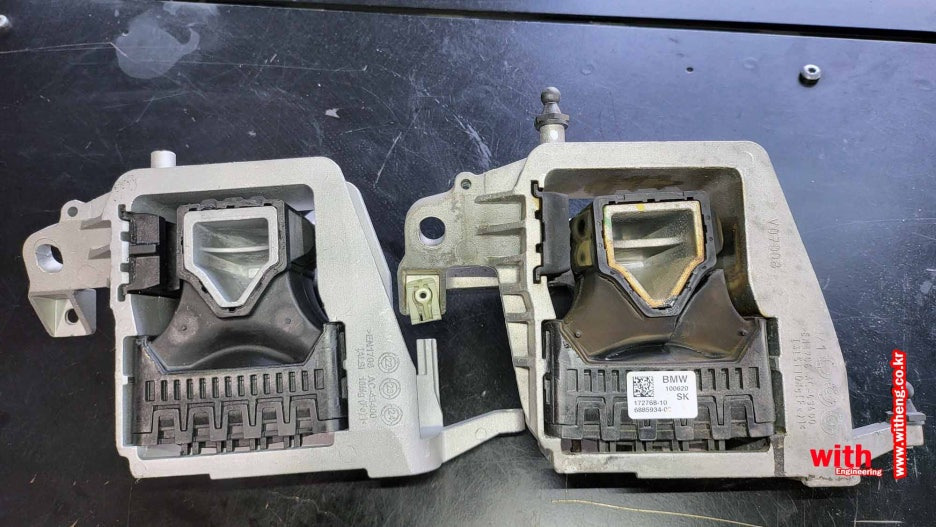 신품 엔진 마운트와 파손된 엔진 마운트입니다.고객님의 요청으로 두 가지만 교환합니다.