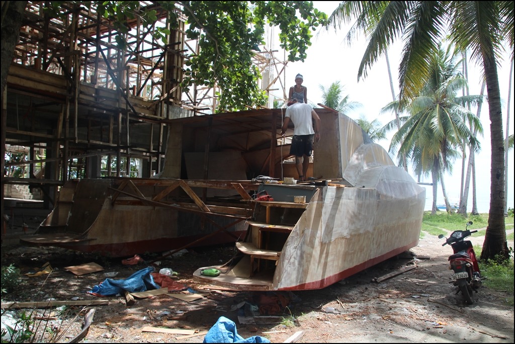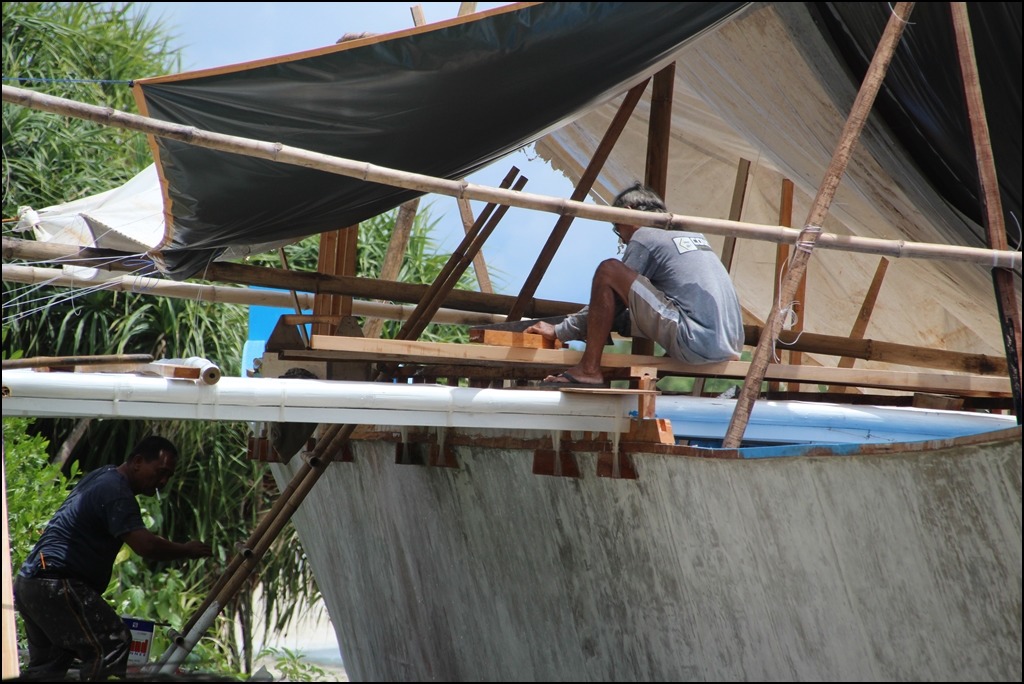 >> 부부?인 듯 단 두 사람이서 배 한척을 건조하고 있다.