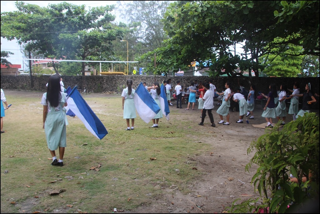 성당과 연결된 학교에서는 체육대회 응원연습인가?