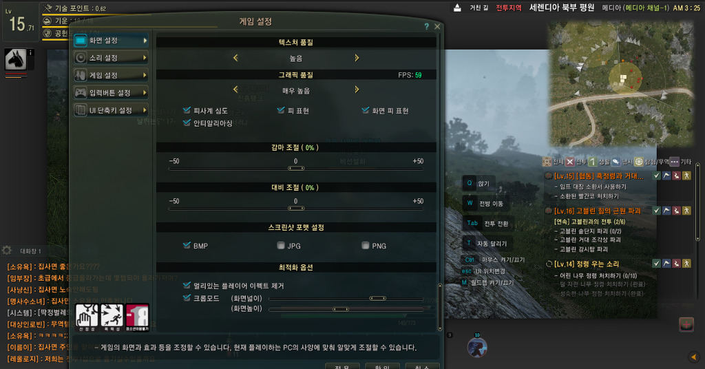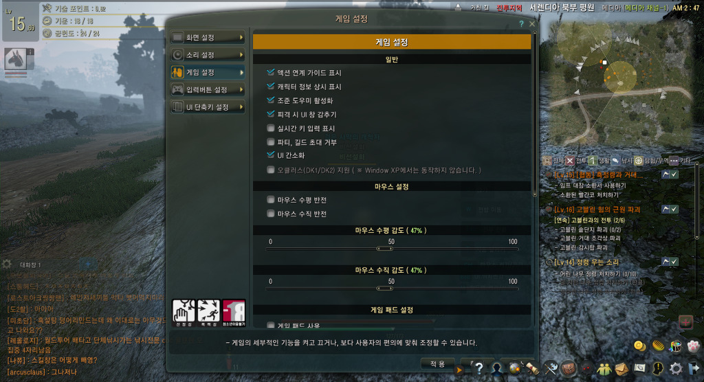 다만, 옮길 수 있는 UI는 한계되어 있습니다. 옮길 수 있는 UI의 경우, 대화창, 1~10번 슬롯창. HP와 MP 스롨창 그리고, 퀘스트 창입니다.