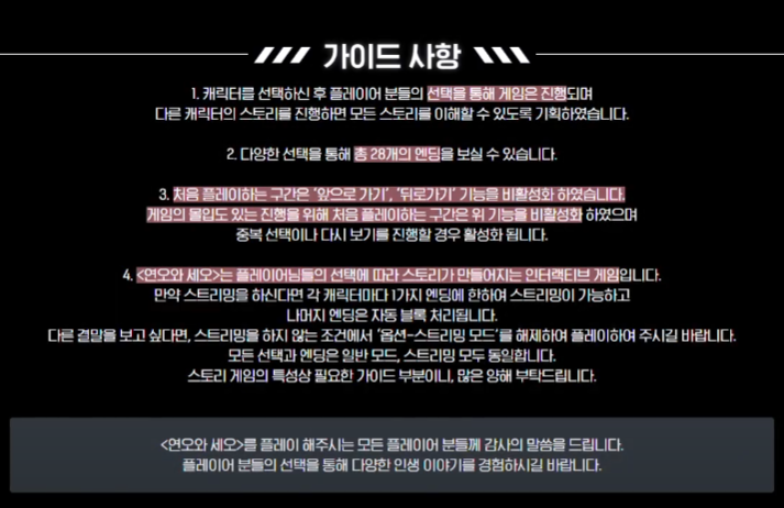 스트리밍시 각 케릭터마다 1개의 엔딩만 볼수 있습니다.