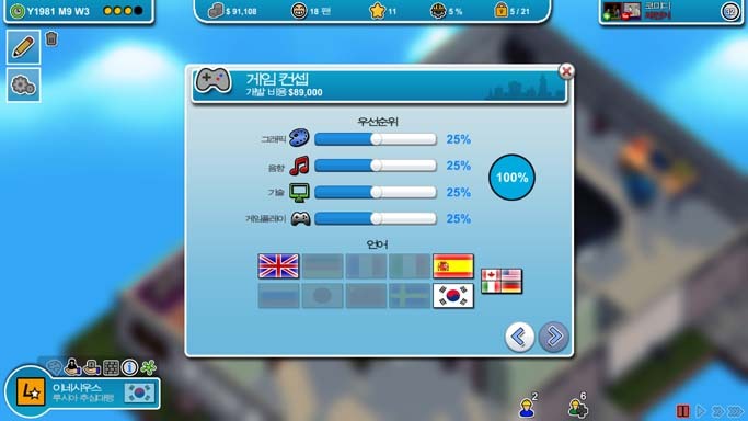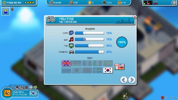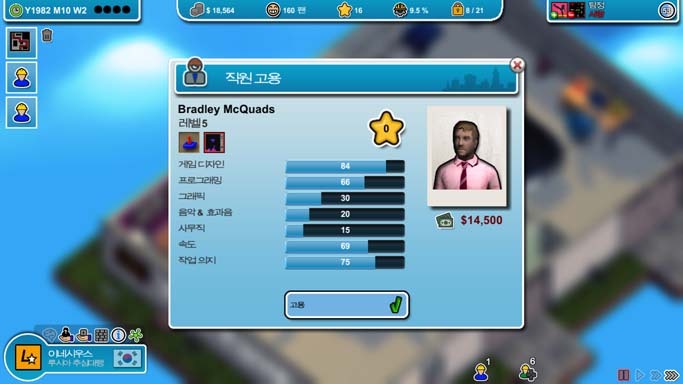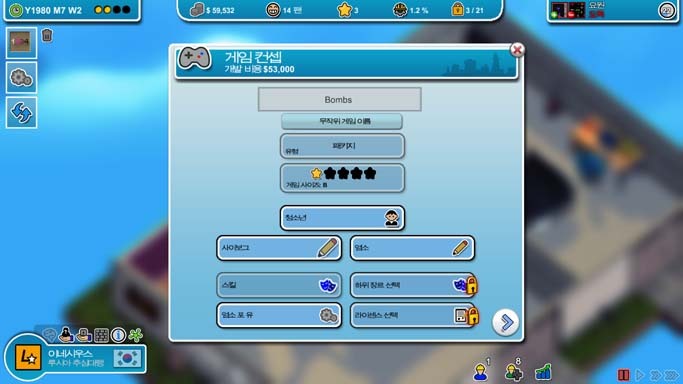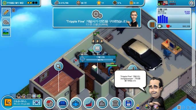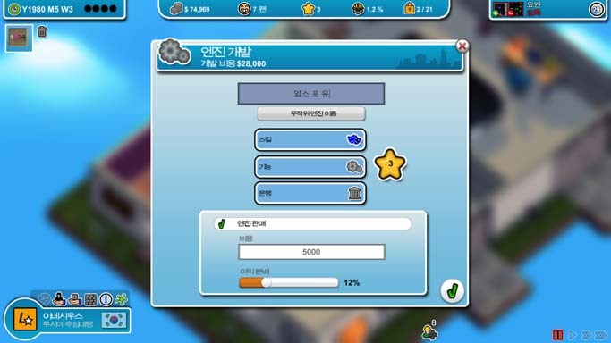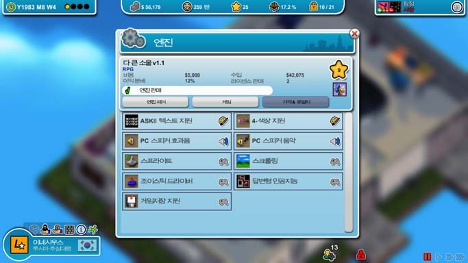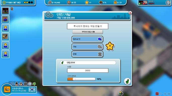 이제 몇 푼 벌었으니 엔진 제작을 열기 위해 첫 게임을 만듭니다. 좀 버거워서 도와주실 아저씨 한분 모심.