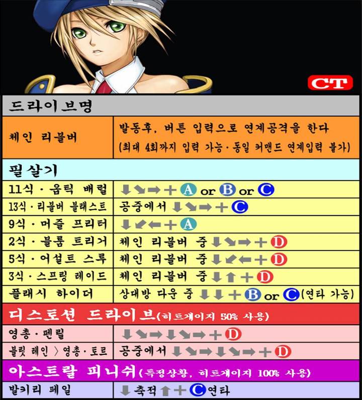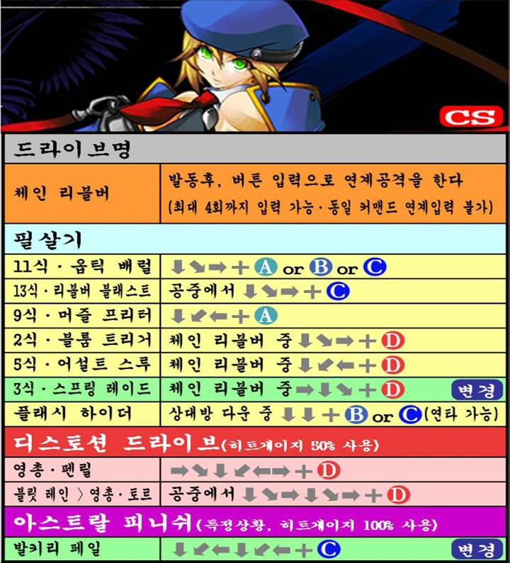 3식ㆍ스프링 레이드 : 체인 리볼버 중 ↓↑ + D (CS에서는 →↓↘ + D 로 변경)
