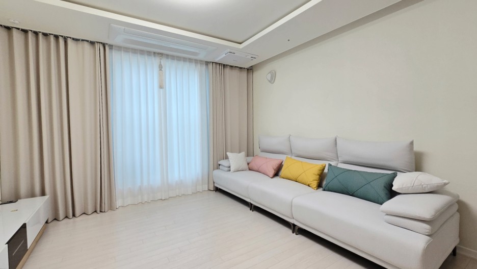 베이지 암막커튼 + 스킨바이오화이트 쉬폰커튼