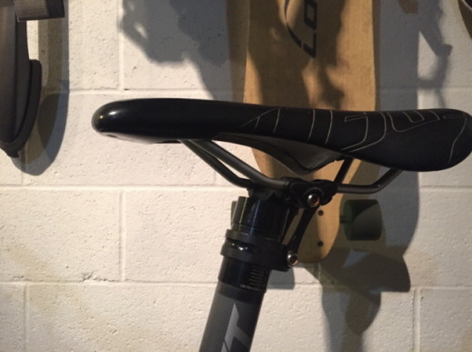 5. 안장의 각도는 사진처럼 딱딱한 판넬이나 책을 안장 위에 올려놓아 보면 쉽게 측정이 가능하다. 안장은 수평 상태로 해주는 것이 기본이다.