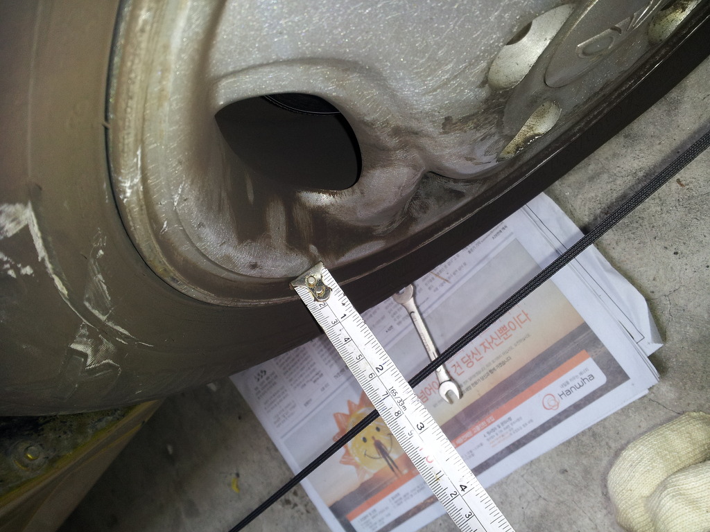 앞 바퀴의 같은 높이에서 앞쪽과 뒤쪽의 길이를 체크하면 틀린게 나오더군요. 그래서 최대한 돌일하게 맞추었습니다.