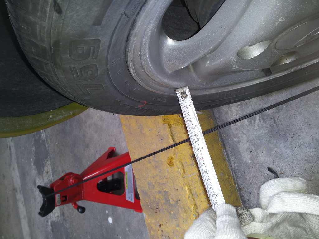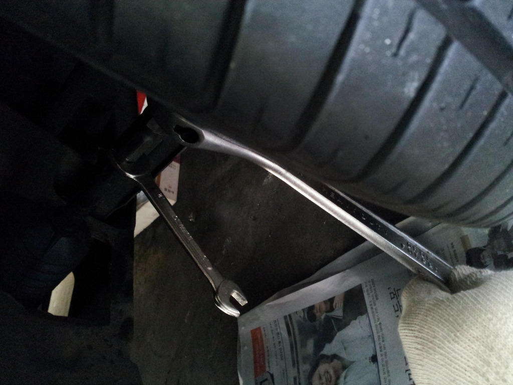 휠얼라이먼트는 토우등등 3가지를 맞추는데 이 방법으로는 토우만 맞출수 있습니다. 그리고 뒤쪽 바퀴는 토우 조절할수 있는 타이로드 같은것이 없더군요. 그래서 안했습니다.