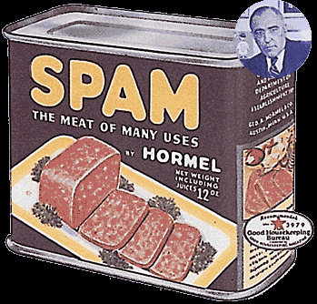 1937년 미국의 식품회사인 호멜푸드가 만든 다진 돼지고기 통조림의 이름인 스팸(SPAM)은