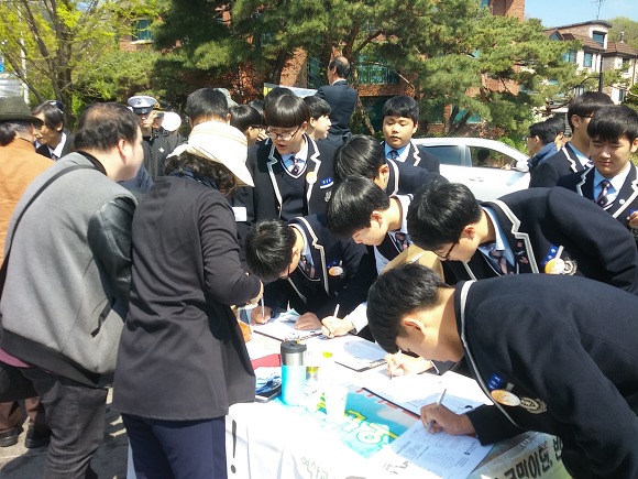 기념식에 동원되는 학생들이 있는데, 오늘은 대광고등학생들이다.