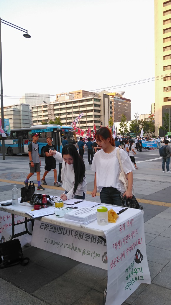 싸드배치반대를 외치는 계단위의 낯모르는 '동지'와 인사하고 자리를 정리했다.