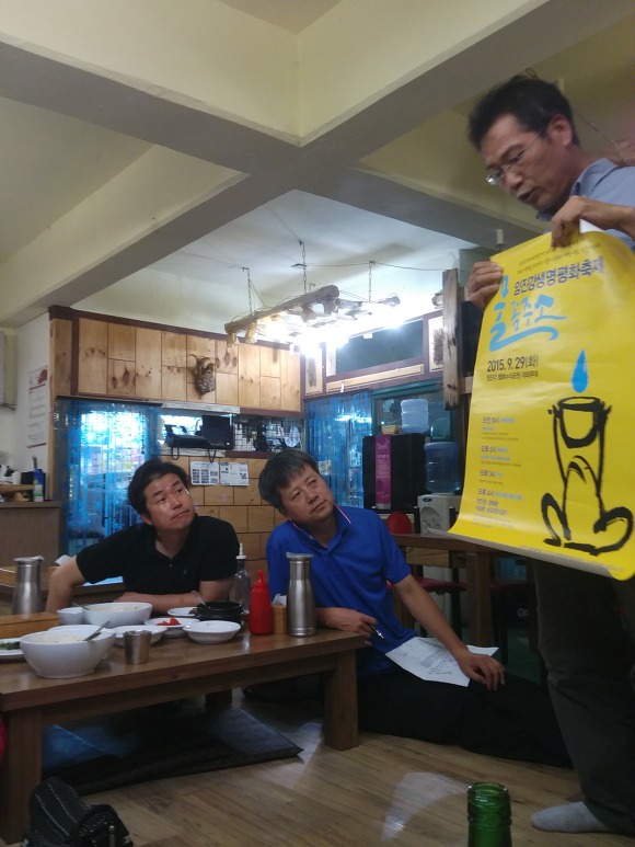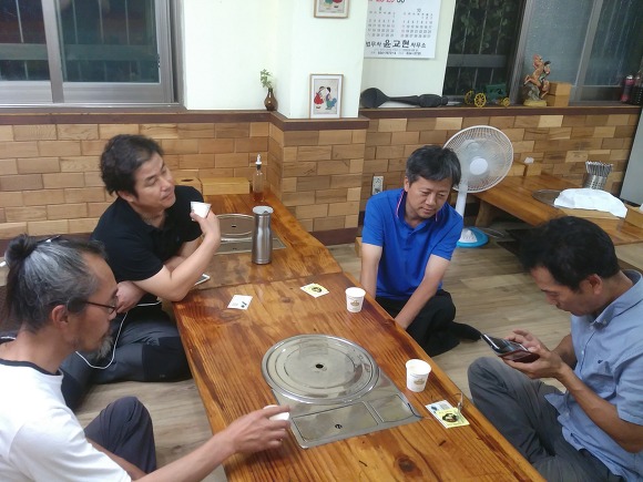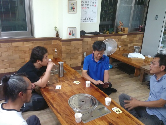 저녁 식사를 할 무렵, 연천의 작목반 회원들이 모임을 갖는 시간을 이용해