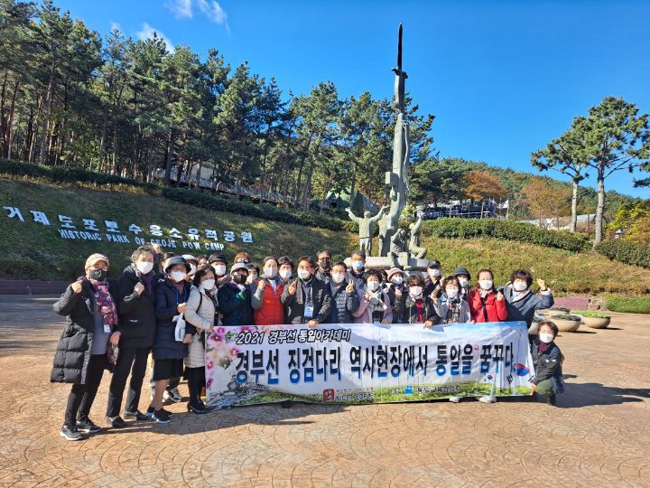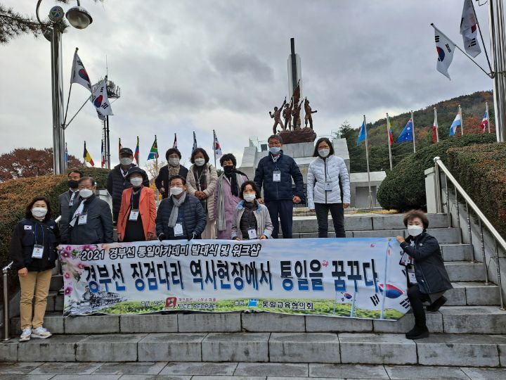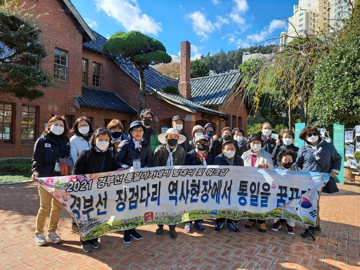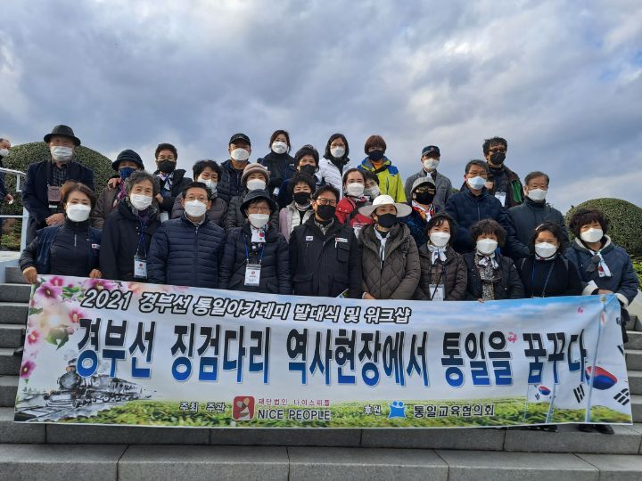 공식 명칭은 <2021 경부선 통일 아카데미>라는 이름으로, "경부선 징검다리 역사 현장에서 통일을 꿈꾸다"는 슬로건하에, 탐방대장은 나이스 피플 박현석 대표가 맡아 수고 하셨고,강사로는 안준희 총재가 맡아 수고 하셨는데,탐방길에 함께한 인원은 앞서의 두분과 스탭진을 포함해서 도합 34명 ㅡ.