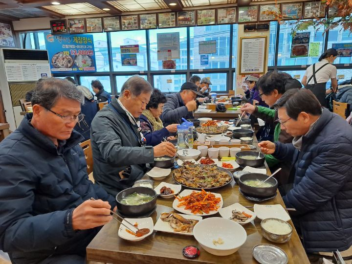 전쟁 기념관 견학을 마치고서, 낙동강 전선의 가장 치열했다는 칠곡 다부동 전투의 전적 기념관을 찾아 참배 및 견학을 한후,경주 휴게소에 들려 점심식사를 하고, 이어서 곧장 부산에 내려가 해운대에 있는 맛집 해물탕집에서 석식을 한후, 앰버서더 호텔에 여장을 풀었다.