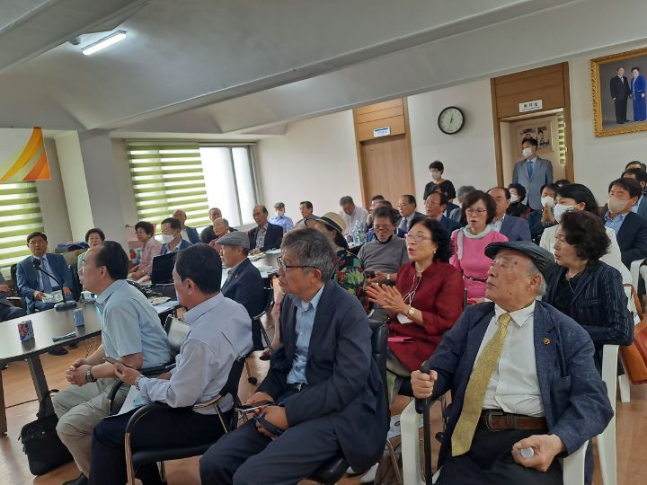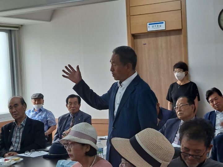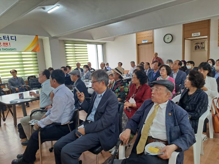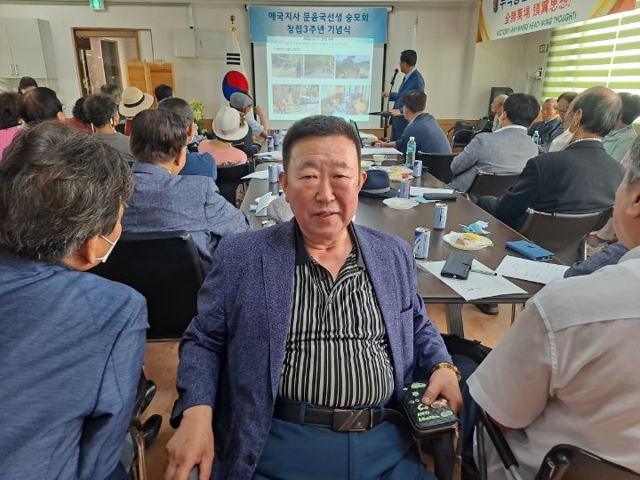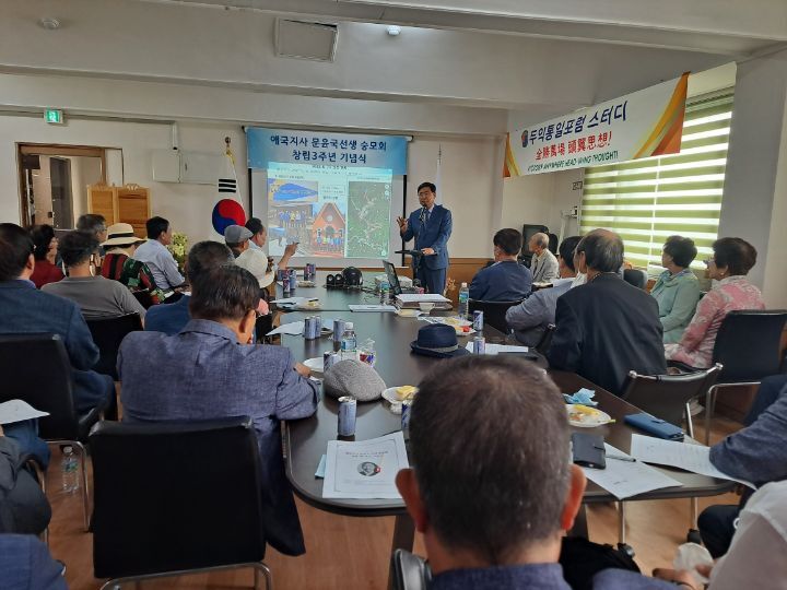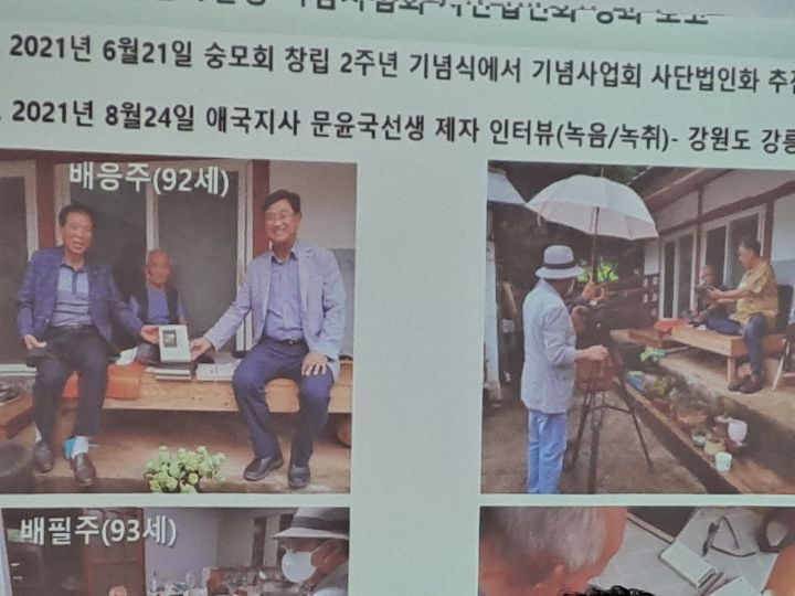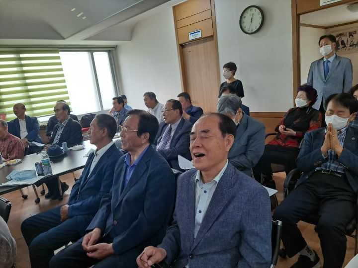 그런가 하면,문윤국 선생 생존시 유일하게 어린시절 직접 선생의 가르침을 받았다는 김형태회장의 증언을 들어보기도 하고,김영휘 고문과 손대오 부회장의 보충설명과 노래를 불러 주시는 시간을 갖기도 했다.