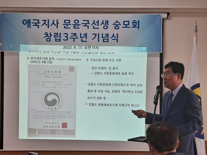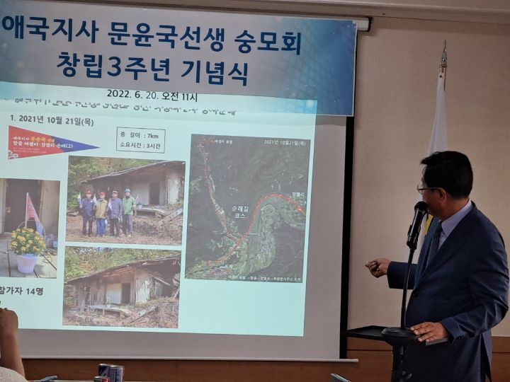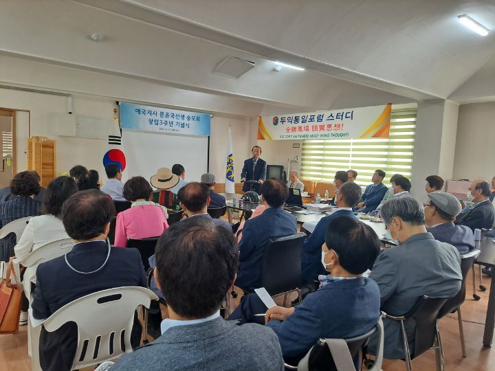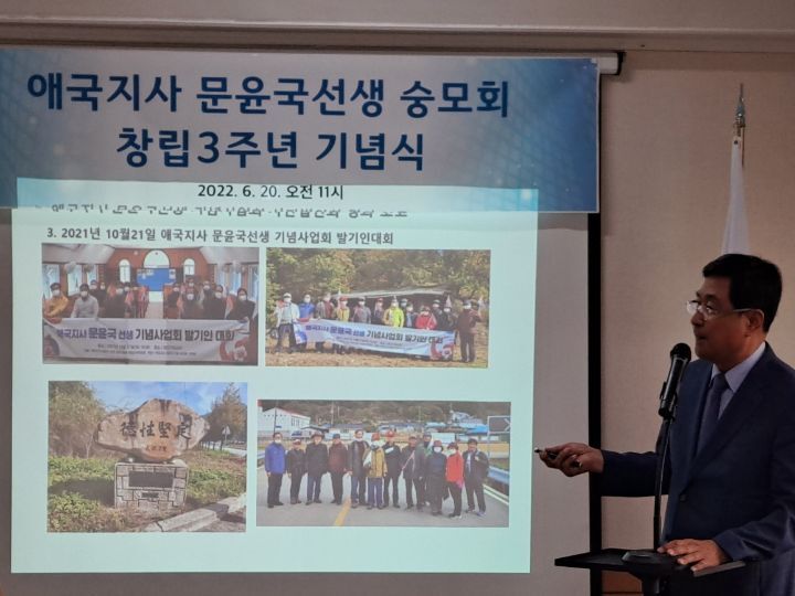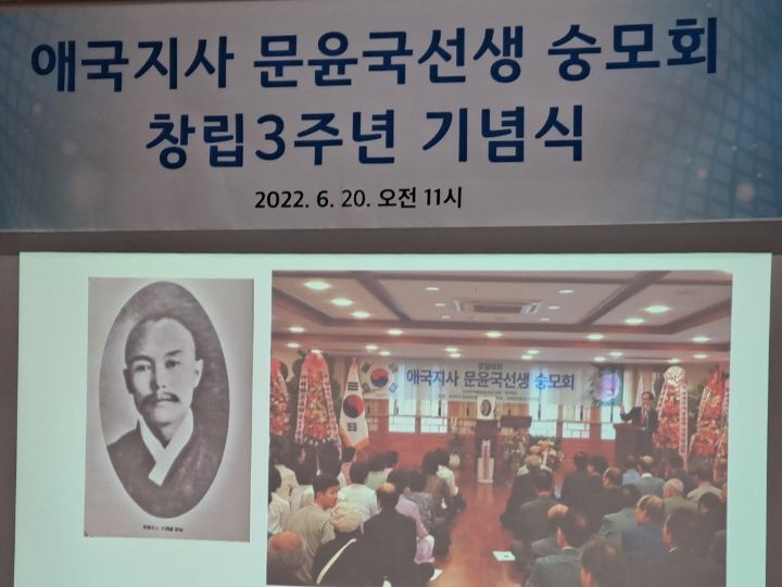 2022년 6월 20일 오전 11시,서울시 중구 서애로에 소재한 문중빌딩 4층 문윤국 선생 숭모회관에서, 애국지사 문윤국선생 숭모회 창립 3주년 기념식이 열렸다.