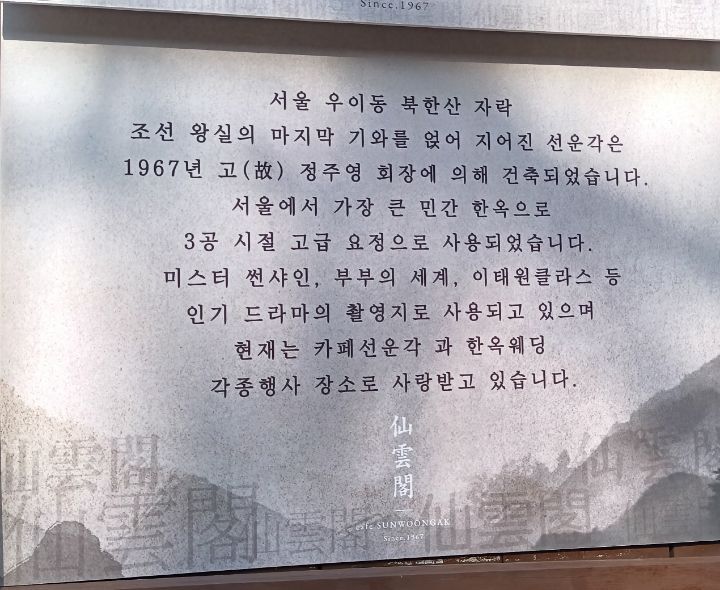 선운각은, 고 정주영회장에 의해 건축된 서울에서 가장 크다는 민간 한옥이다.