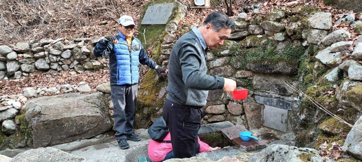 못해 좀더 상류까지 올라갔다 하산길에 약수터를 발견하기도....