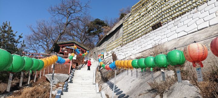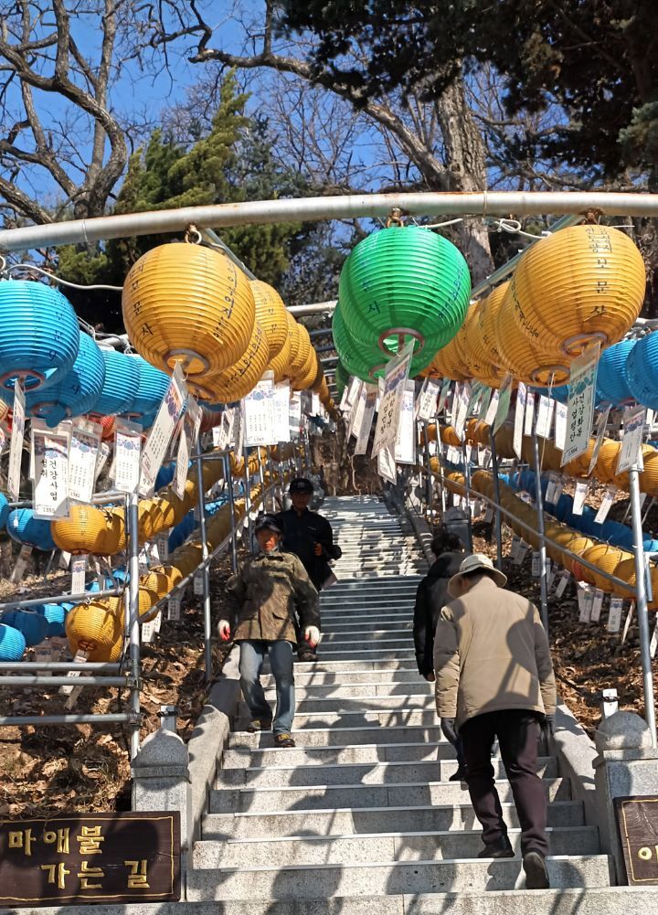 바위까지 가파른 계단길을 올랐다.