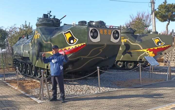 본인이 군시절 몰았던 차량앞에서.