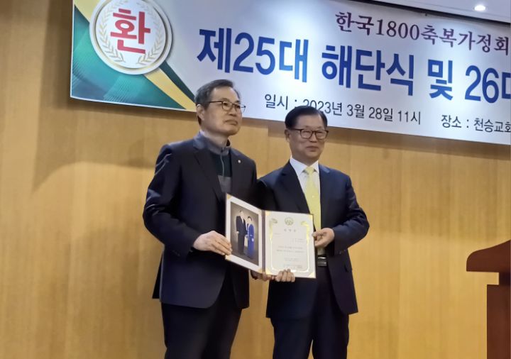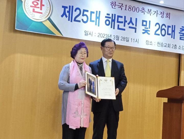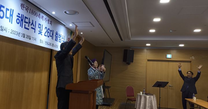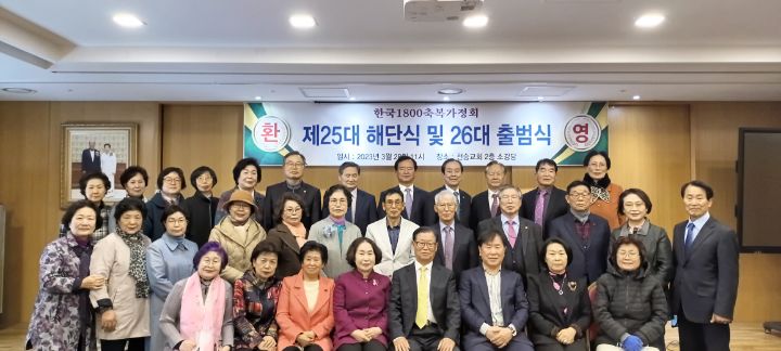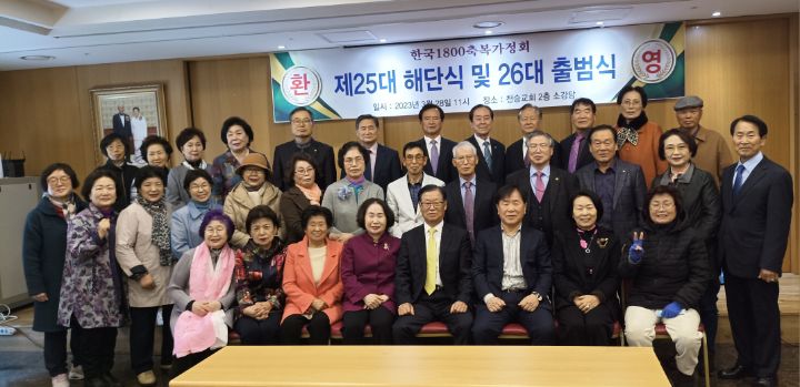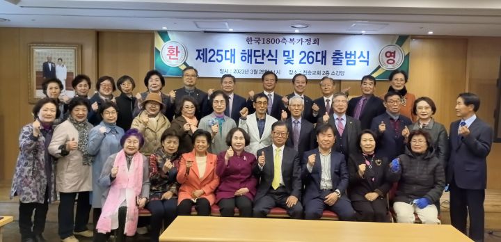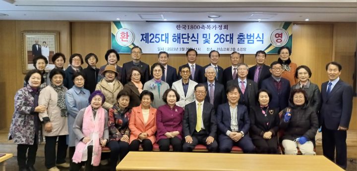 2023년 3윌 28일 오전 11시,서울 용산 소재 천승교회 2층 소강당에서,한국 1800가정 회장단 제 25대 해단식및 제 26대 출범식이 개최되었다.