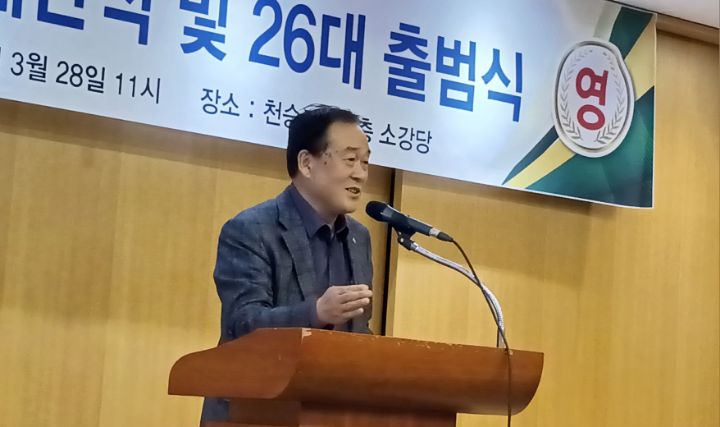이날 가진 해단및 출범식은, 지난달(2월 25일)가진 48회 축복기념행사에서 당선된 김명렬중앙회장을 중심하고, 새로 선임한 임원진과 전국 각지회 회장단 30여명이 함께한 자리였다.