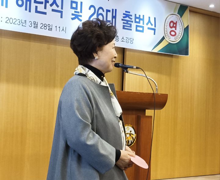 이어서 26대 김명렬회장과 이성조 부인회장의 인사의 시간으로 이어졌다.