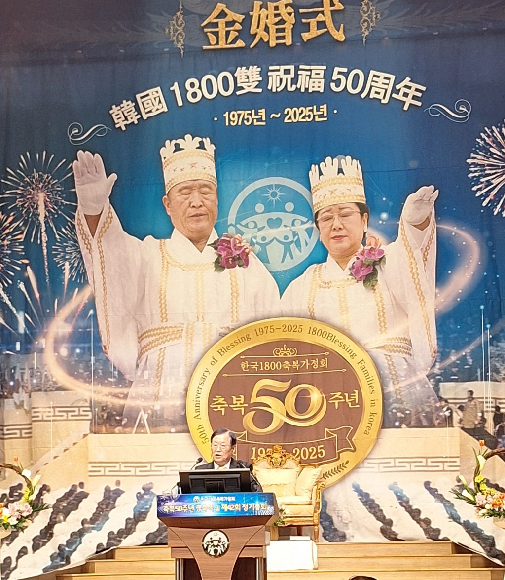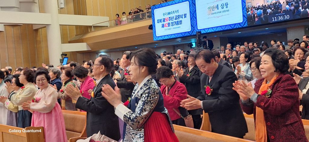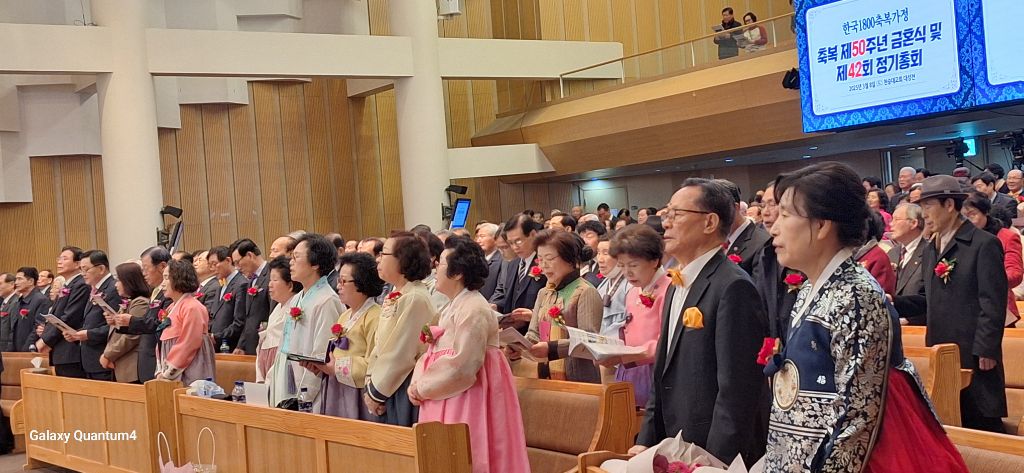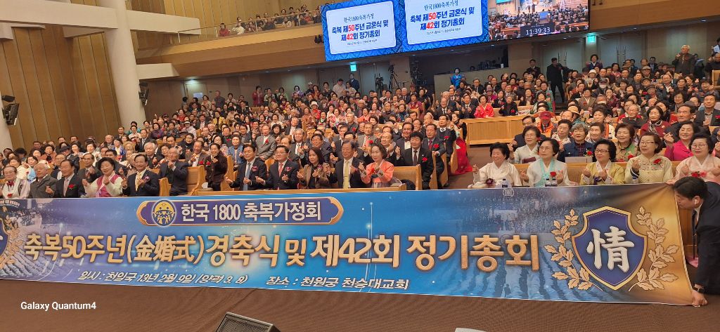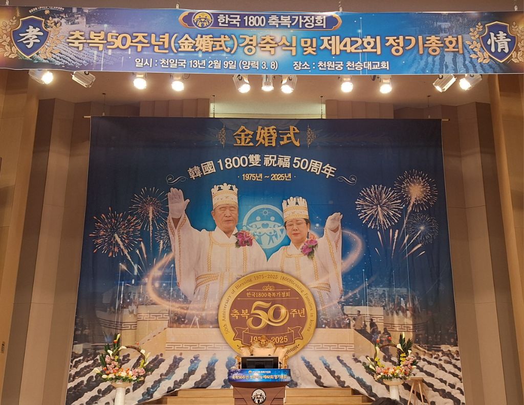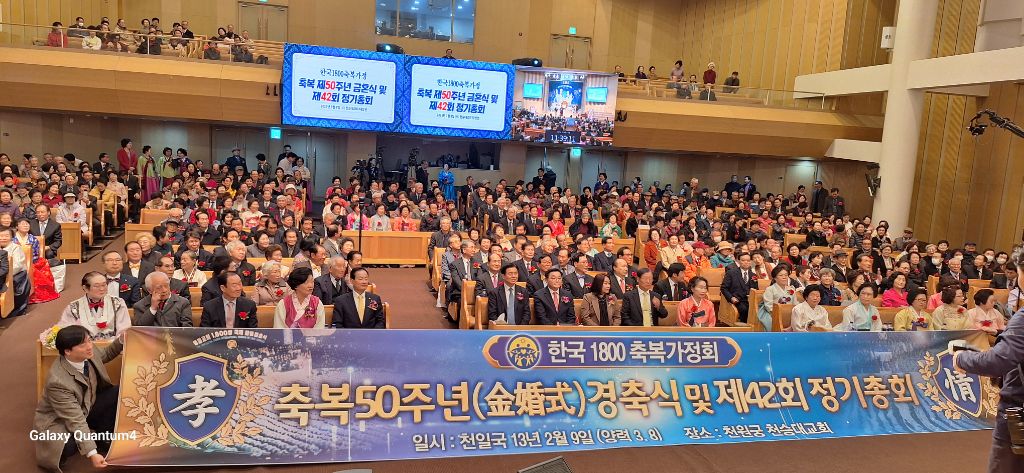 2025년 3월8일 오전 10시 30분,서울 용산구 소재 천원궁 천승대교회 3층 대성전에서,한국 1800축복가정 축복 제 50주년을 맞이한 금혼식 및 제 42회 정기총회가 성황리에 개최되었다.