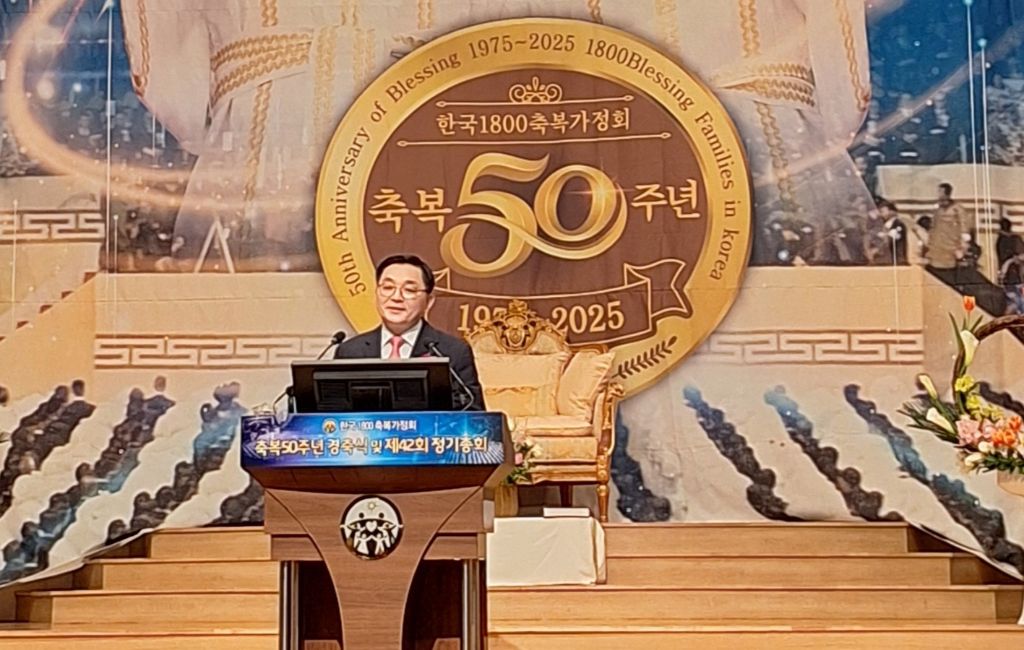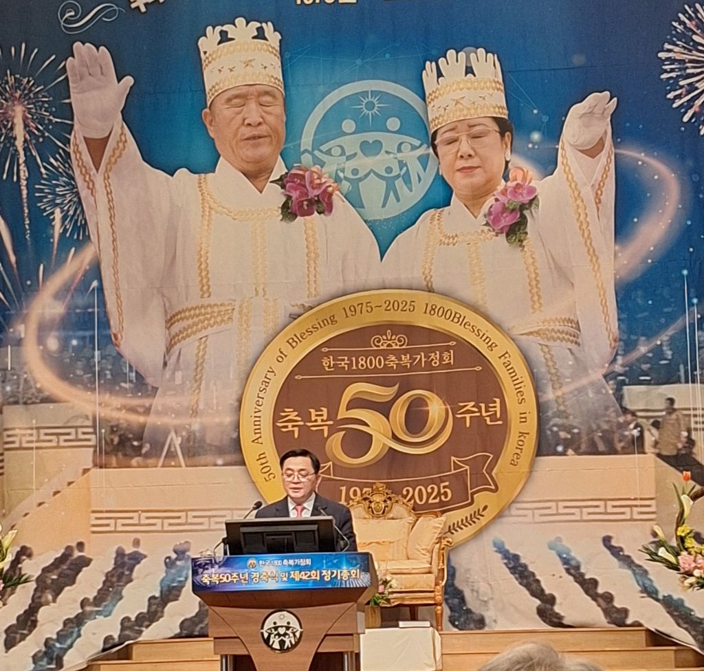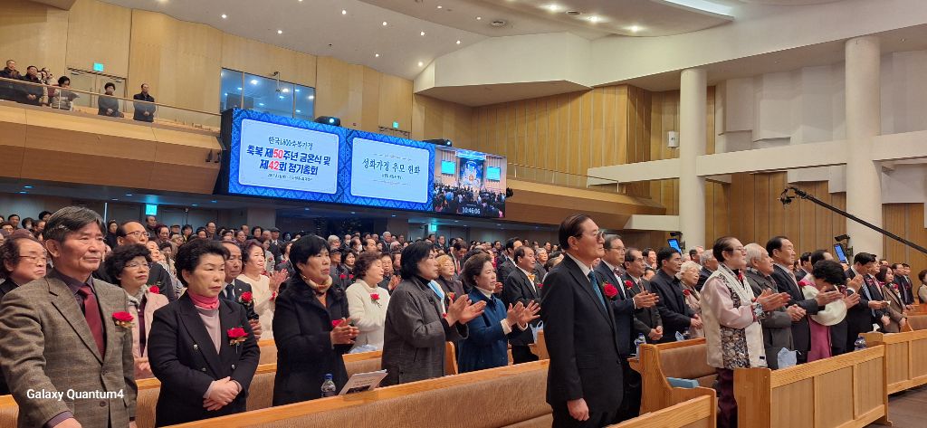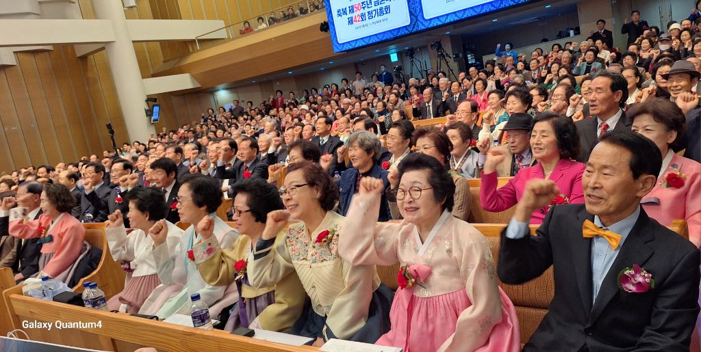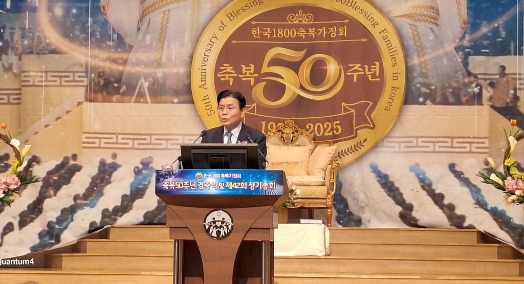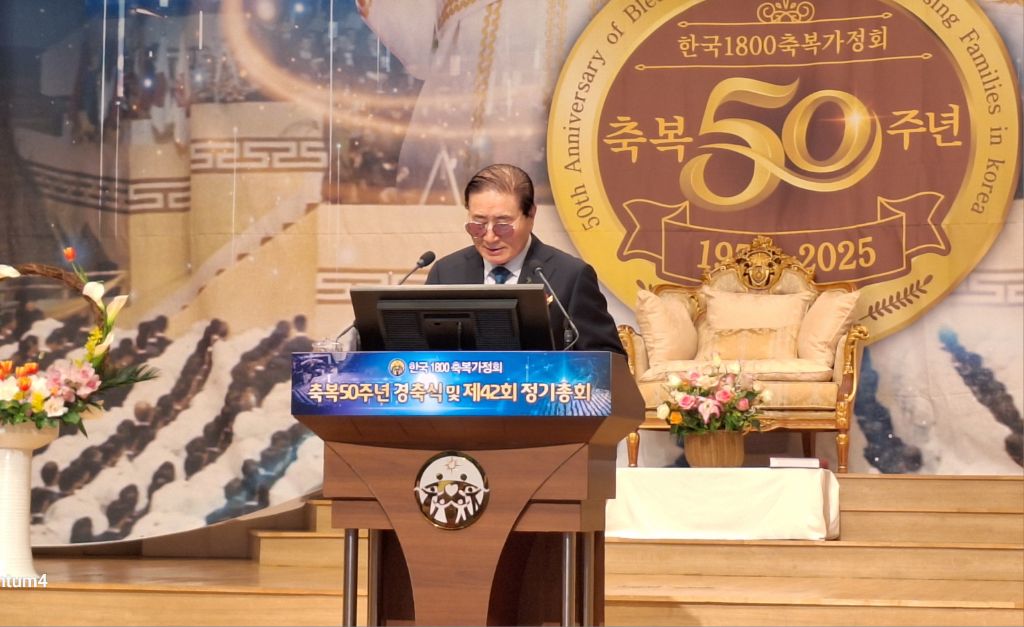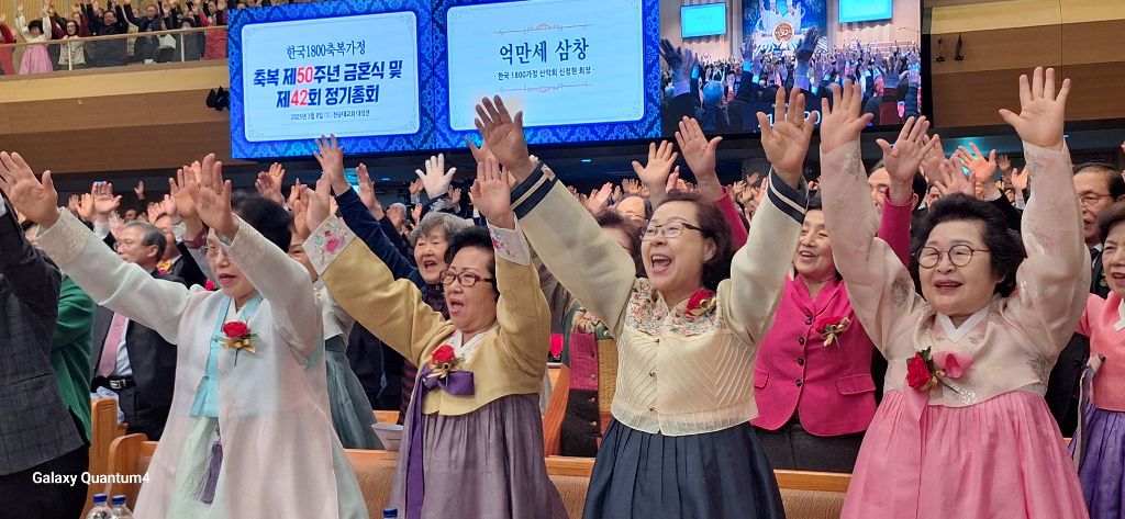 2025년 3월8일 오전 10시 30분,서울 용산구 소재 천원궁 천승대교회 3층 대성전에서,한국 1800축복가정 축복 제 50주년을 맞이한 금혼식 및 제 42회 정기총회가 성황리에 개최되었다.