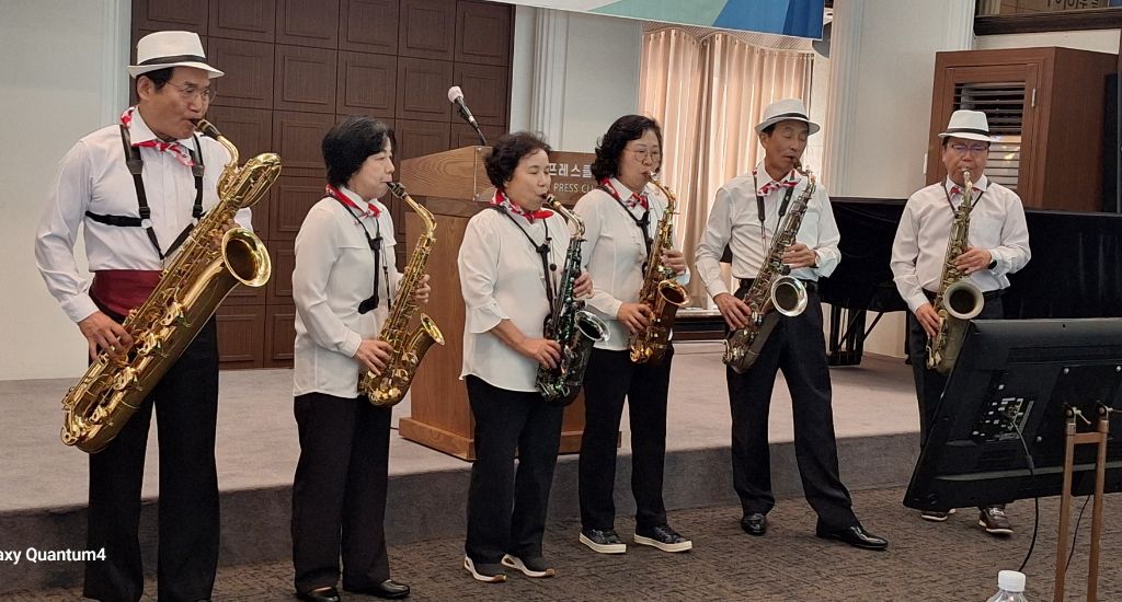 의 사회로 개회선언,식전공연(세소폰연주)