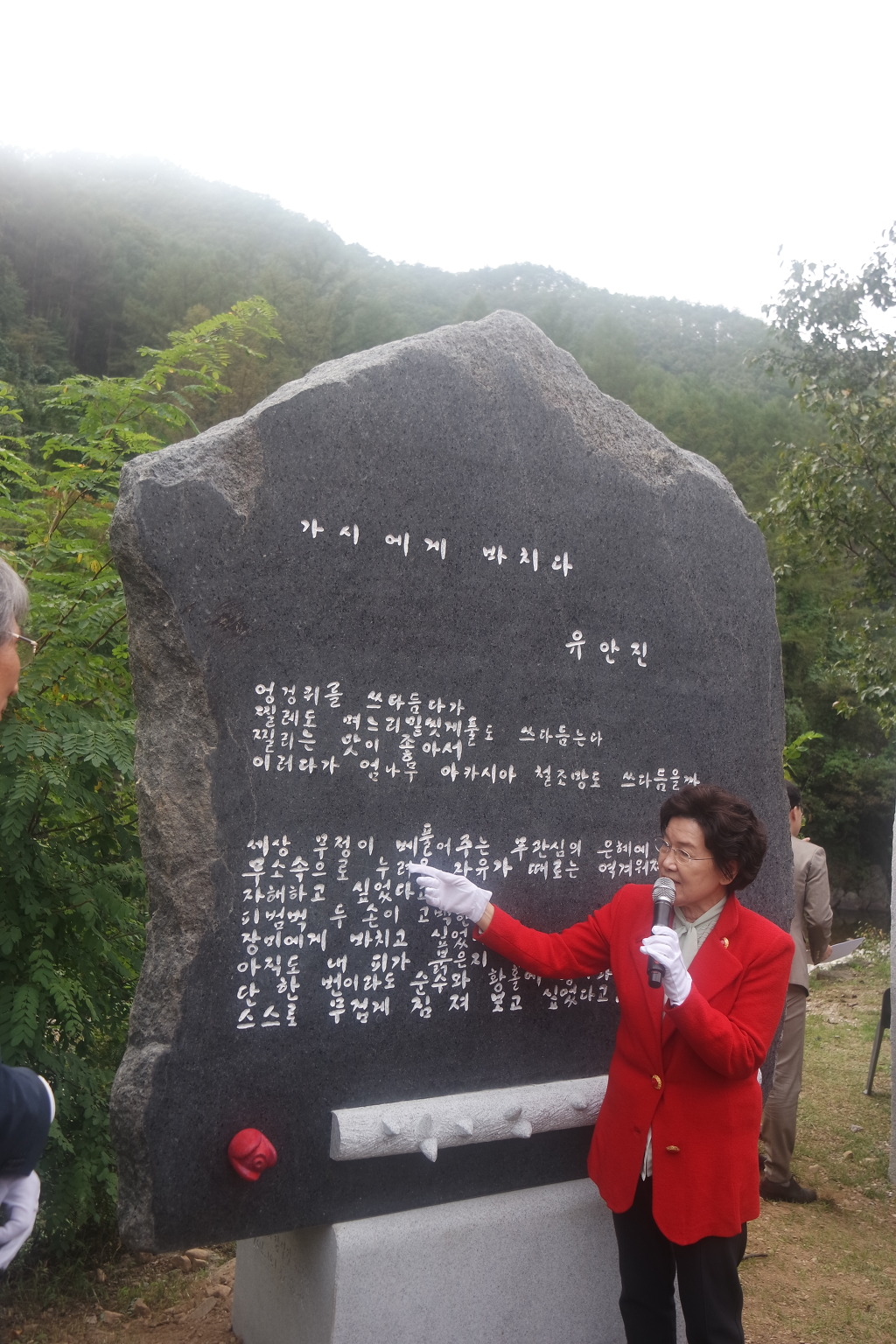 유 안진시인이 자신의 시비앞에서...