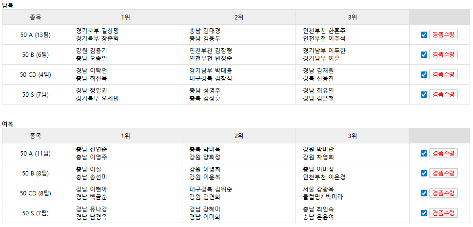 여복 50D 2위 충남 김경옥, 충북 이영주