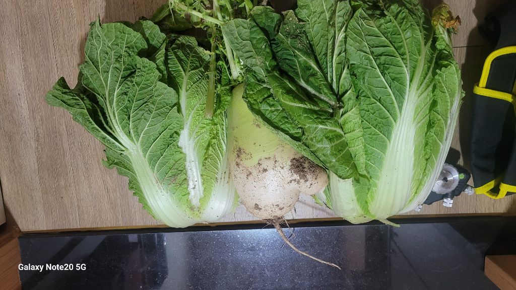 생각해 이웃집에서 뽑아보낸 배추 두포기와