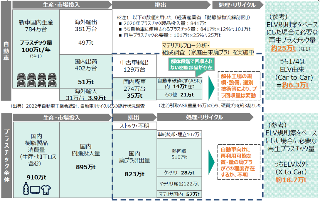 • 현재, 폐차 유래의 폐 플라스틱은 거의 선별 회수되지 않는다.