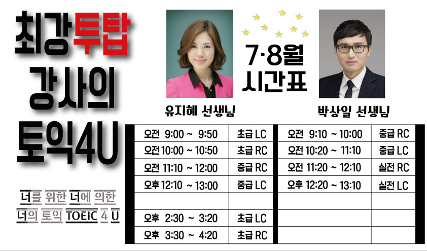 [유앤박어학원] 8월 수업 접수 공지 작성자안남규|작성시간23.07.20|조회수410 목록 댓글 0 글자크기 작게가 글자크기 크게가 접수 시작일 : 7월 24일 (월) 오전 9시 ~접수 방법 : 현장 접수결제 방법 : 카드 or 현금 (계좌이체 불가)수강료 : 수강료 : 2과목 1개월 접수 시 1만원 할인 150,000원 다음검색 현재 게시글 추가 기능 열기 북마크 신고 센터로 신고 댓글 댓글 0 댓글쓰기 답글쓰기 댓글 리스트