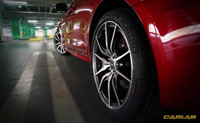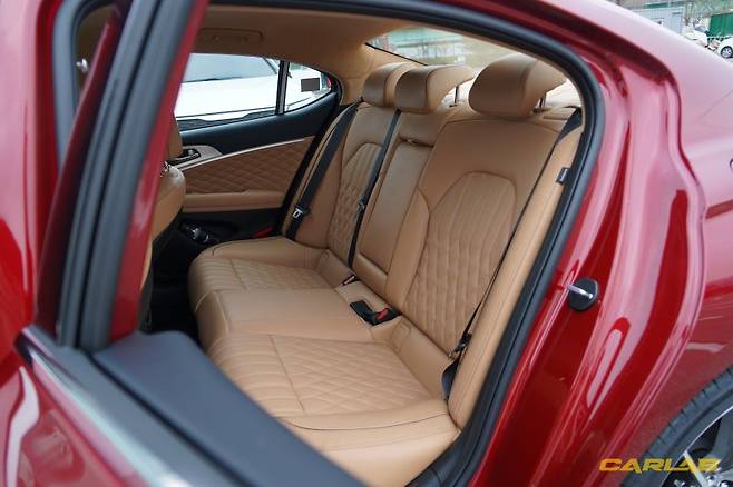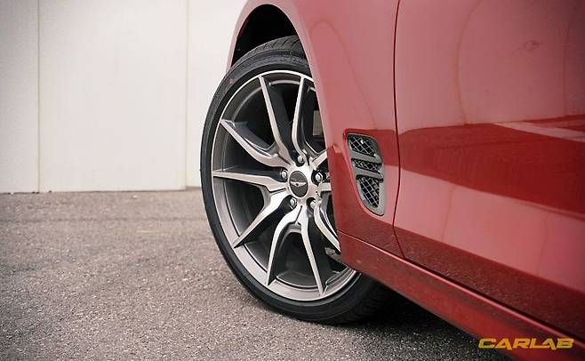 역동적인 차체 비율도 여전하다. 긴 보닛과 짧은 전방 오버행(범퍼 끝에서 앞바퀴 중심까지의 거리)은 후륜구동만이 가질 수 있는 특권이다. 가솔린 2.0 터보 모델에는 18인치 휠과 브릿지스톤 타이어가 기본 적용되지만 시승차에는 19인치 다이아몬드 컷팅 휠 및 미쉐린 타이어 옵션이 적용됐다. 18인치 휠도 차체에 비해 작은 느낌이 없고 69만 원이라는 추가 비용도 필요하기 때문에 휠 사이즈가 다소 고민될 수도 있겠다.