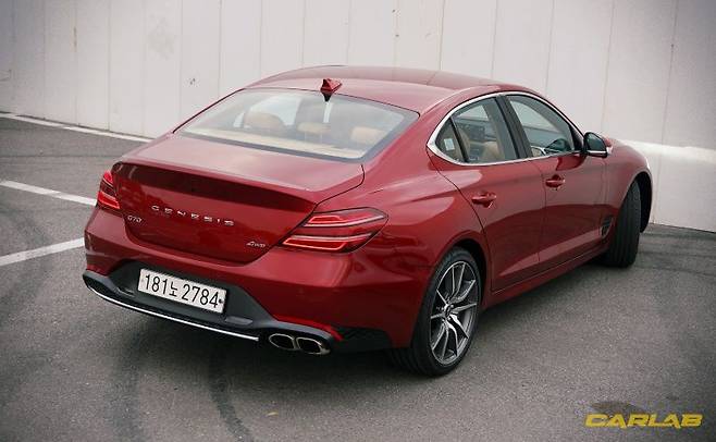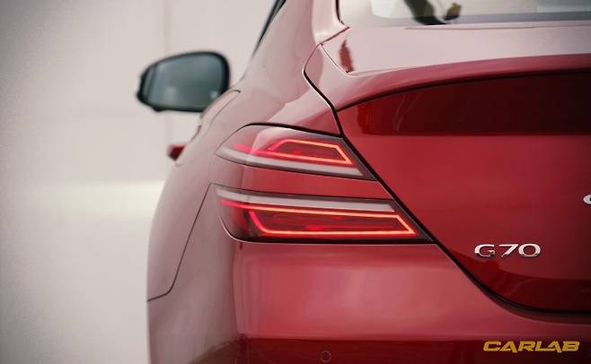 다른 제네시스 라인업과 비교하면 어색함은 배가 된다. 트렁크를 가로지르며 일자로 뻗어나가는 리어램프가 G70에는 없다. 비교적 짧고 사선으로 치켜올라가는 리어램프가 남았을 뿐이다.