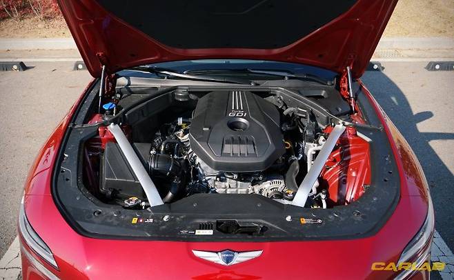 사실, 시승이 끝난 지금이야 이렇게 말하지만 사실 처음 시승차를 받았을 때는 그렇게 만족스럽지 못했다. 보닛을 여는 순간 그랬다. 3.3리터 6기통 엔진을 위해 만든 방을 채우기에 2리터 4기통 가솔린 엔진은 너무나 작았다. 엔진이 한 귀퉁에 있었다고 표현하고 싶을 정도로 엔진룸은 휑했다.