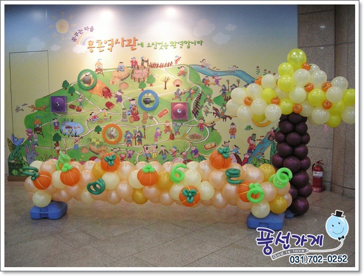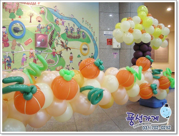 가을이 오면 제가 좋아하는 호박풍선들은 풍선아래 하단쪽에 붙여주었어요.