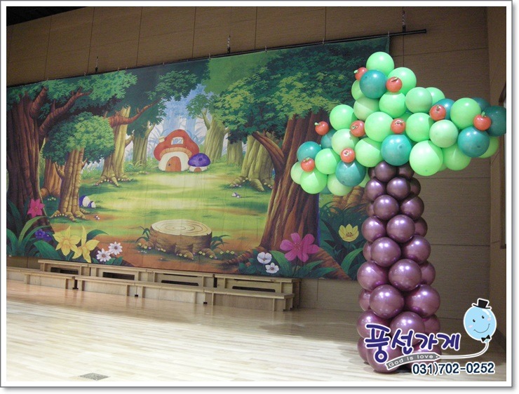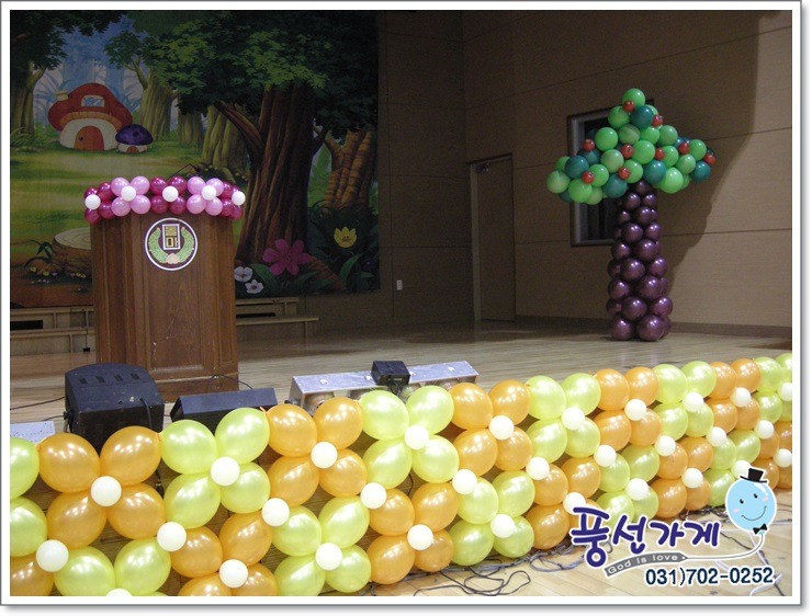 무대 아랫부분은 링커룬 풍선을 이용하여 붙여드렸는데,