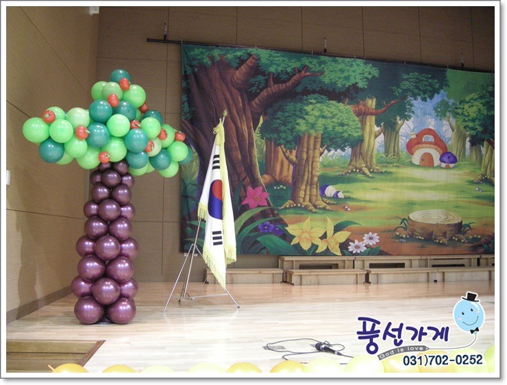 무대 뒷배경을 숲속마을처럼 현수막을 맞추셨더라구요.
