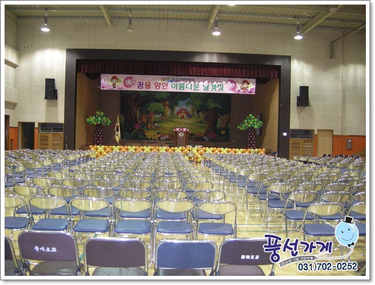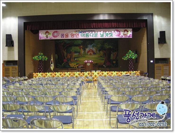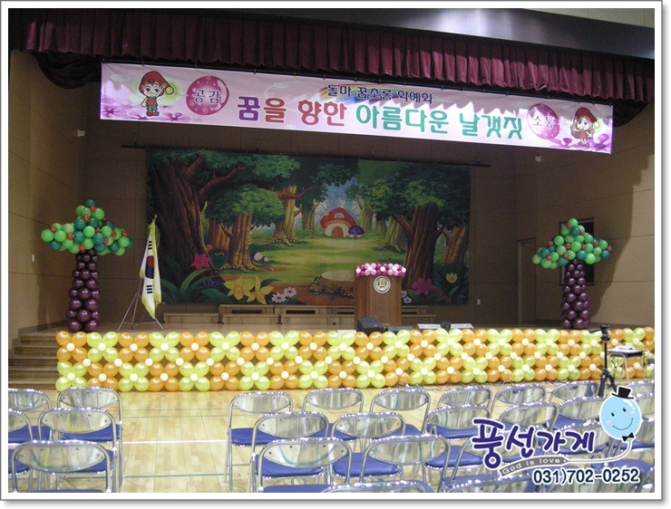 그래도 저렇게 무대 하단을 풍선으로 장식하니, 지저분한 것들이 싹 가려져서 좋더라구요.