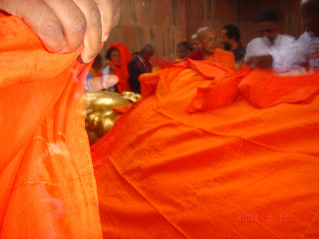 부처님 열반상에 참배하려 줄서서 기다리는 현지인들
