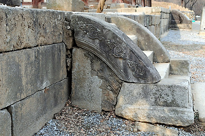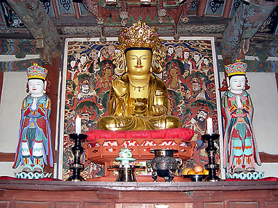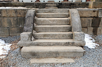 원통전에 이르러 두벌대로 다시 기단을 두르고 그 위에 위치한다.