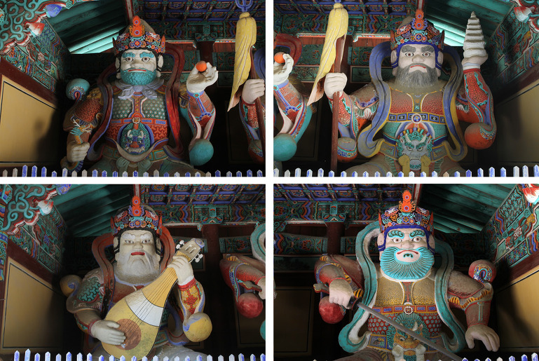 시계바늘 돌아가는 방향으로 남방증장천왕, 서방광목천왕, 동방지국천왕, 북방다문천왕