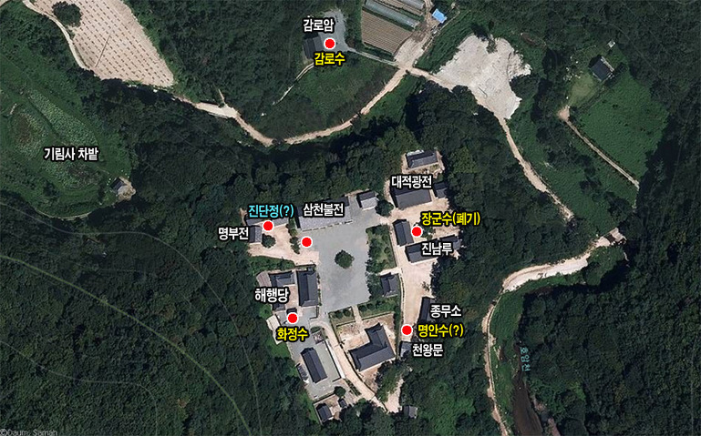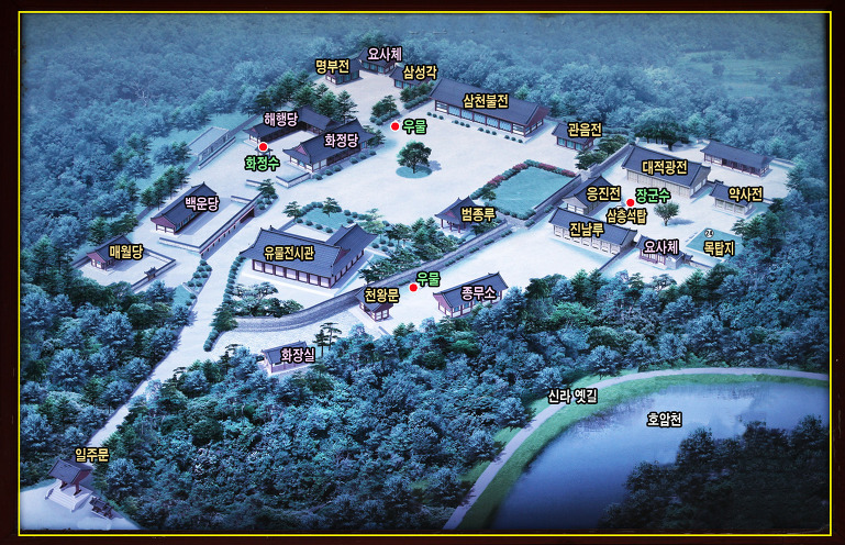 (범종루가 상단으로 옮겨졌고 유물전시관 1동이 철거되었으며 종무소 건물이 세워짐)