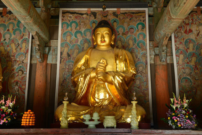 대적광전은 지혜의 빛으로 세상을 비춘다는 비로자나불을 모셔 놓은 법당이다.