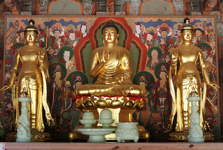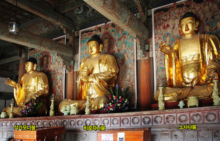 중앙에 비로자나불을 모시고 좌우에 노사나불(盧舍那佛)과